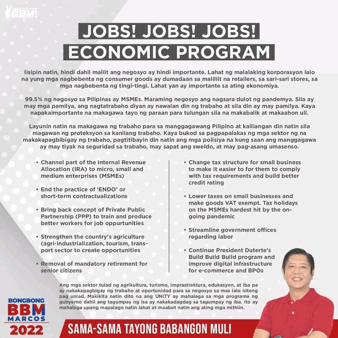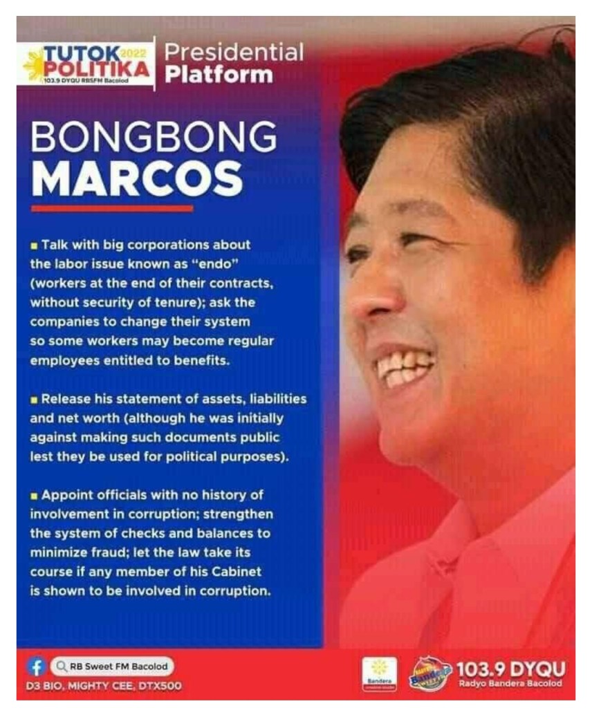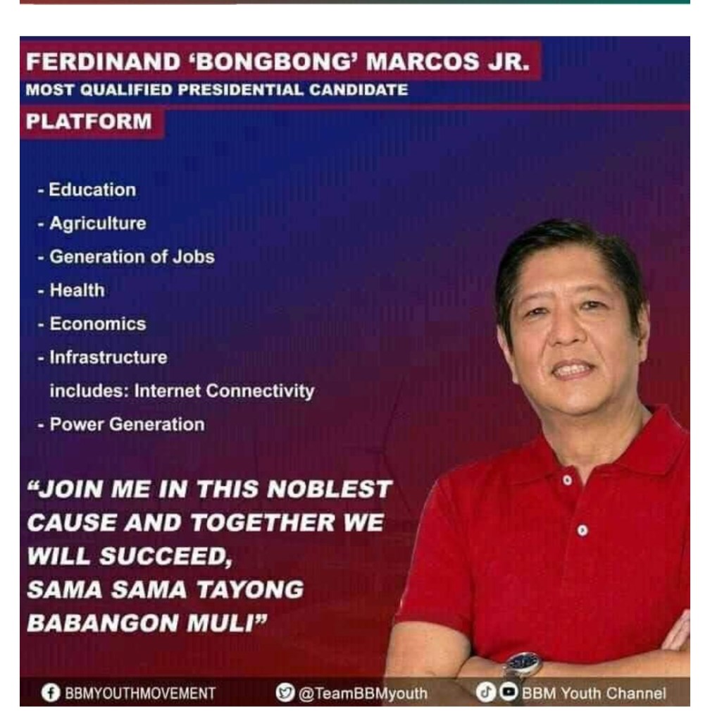 FeaturedBong Bong Marcos Platforms Here are the Platforms of Sir Ferdinand Martin Romualdez Marcos Jr.