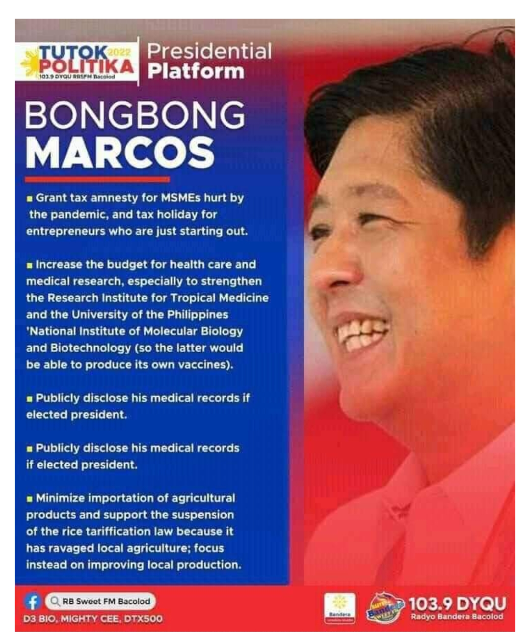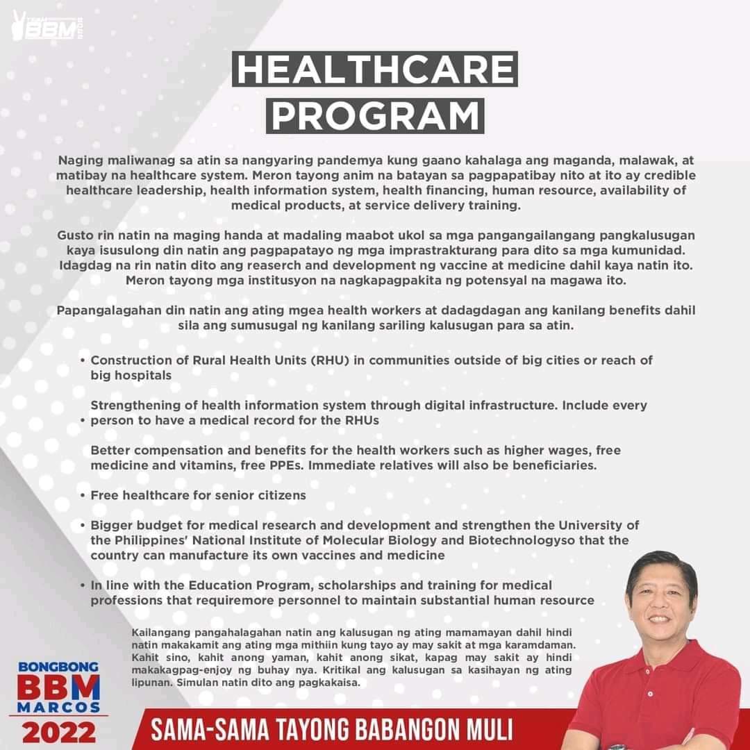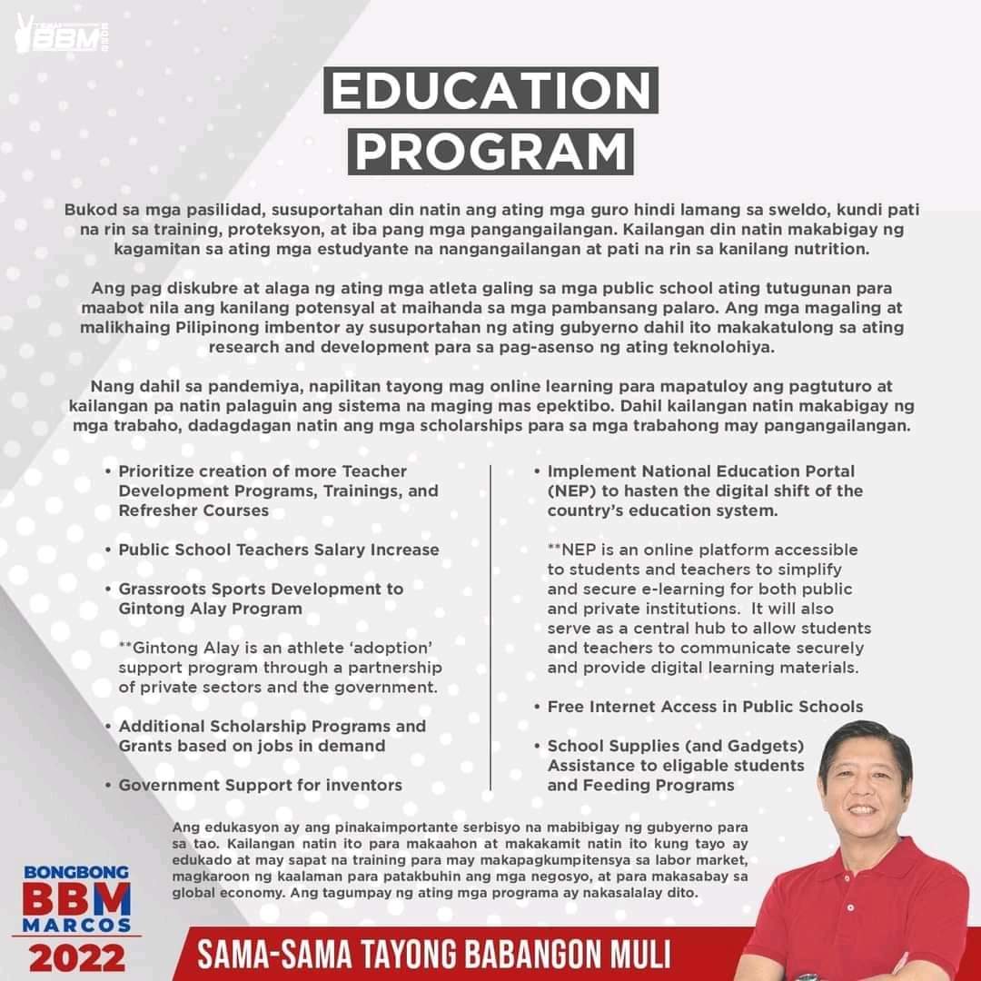 FeaturedBong Bong Marcos Platforms Here are the Platforms of Sir Ferdinand Martin Romualdez Marcos Jr.